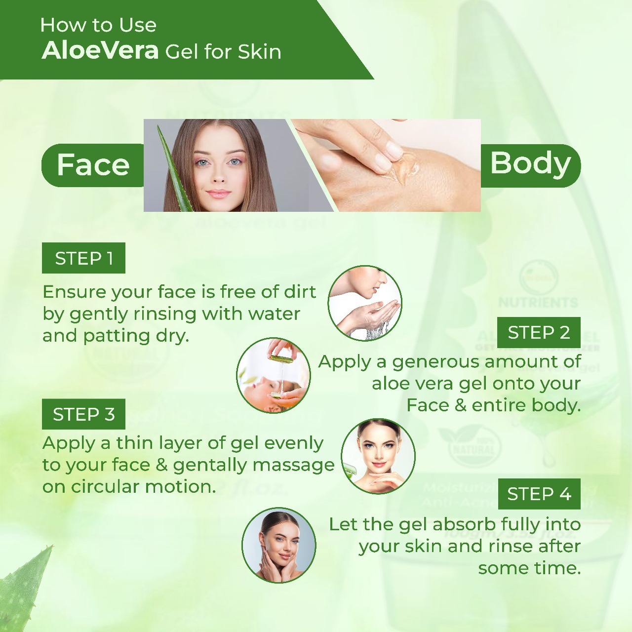 Its lightweight, non-sticky, and fast-absorbing formula delivers deep hydration while promoting a healthy, natural glow. Suitable for use on the face, body, and hair, it can be used as a daily moisturizer, after-shave gel, soothing treatment, or natural hair conditioner.