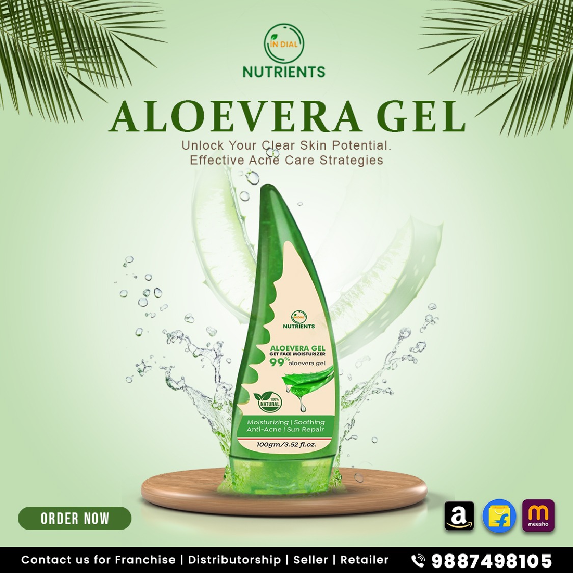 In-Dial Nutrition Aloe Vera Gel is a 99% pure and natural skincare solution formulated to hydrate, soothe, and rejuvenate your skin and hair. Enriched with the natural cooling and calming properties of Aloe Vera, this multipurpose gel helps relieve sunburn, reduce acne, soothe irritation, and restore moisture to dry skin.