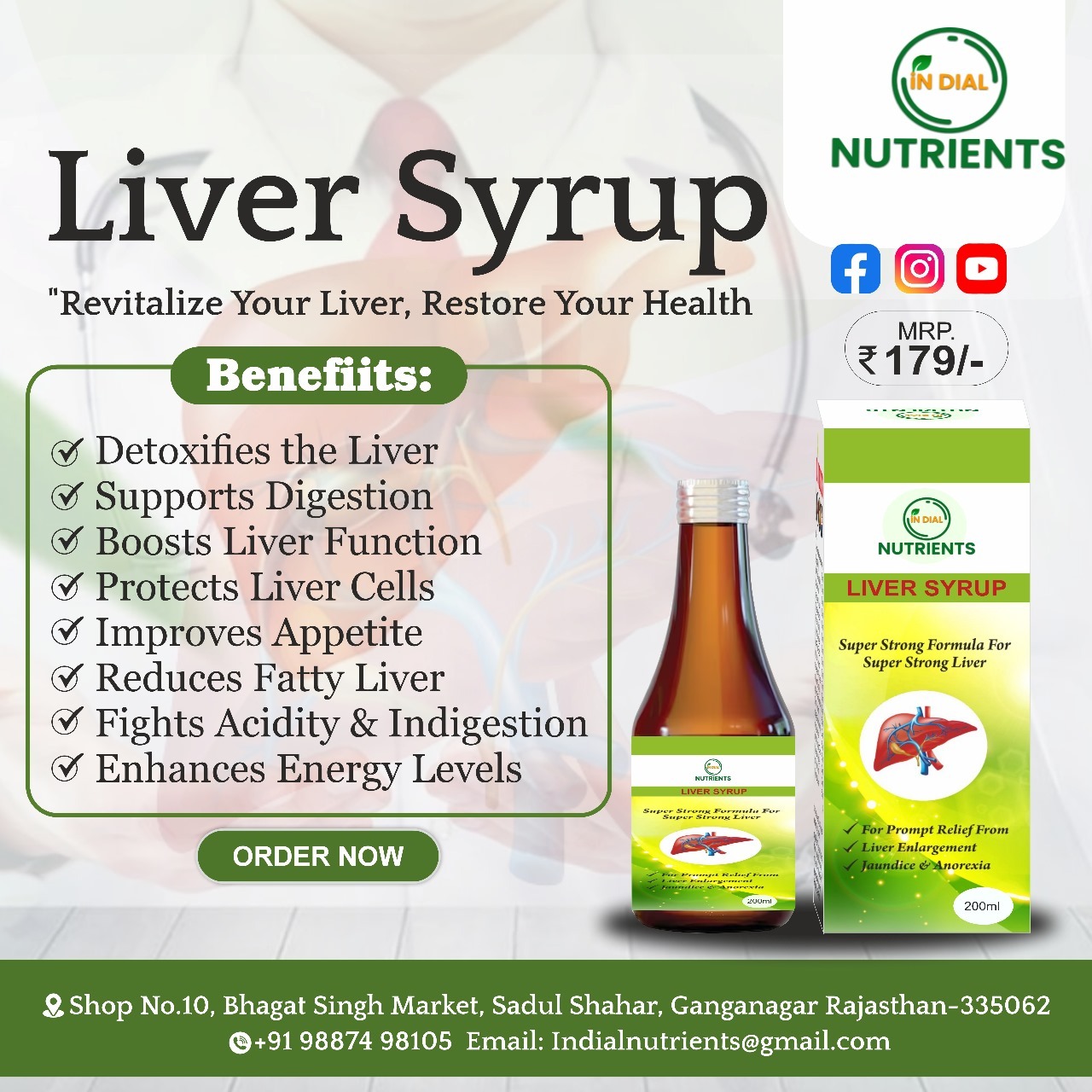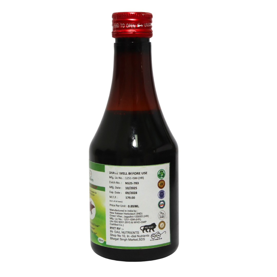 In-Dial Nutrition Liver Syrup is a potent Ayurvedic formulation designed to support and maintain healthy liver function naturally. Crafted with time-tested herbal ingredients, this liver tonic helps promote detoxification, improve digestion, and support the regeneration of liver cells.