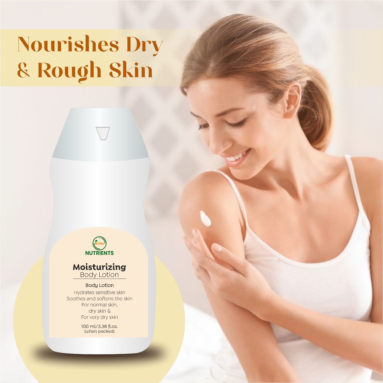 Pamper your skin with the gentle care of In-Dial Nutrients Moisturizing Body Lotion, specially formulated for normal and sensitive skin. Enriched with the soothing properties of Chamomile and the skin-repairing benefits of Allantoin, this lightweight lotion deeply hydrates while calming irritation and restoring softness.
