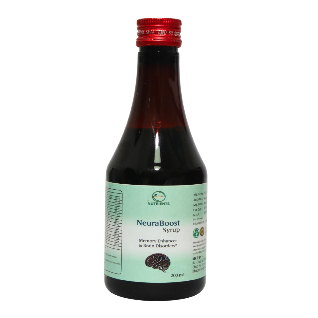 In-Dial Nutrients Neura Boost Syrup is a carefully crafted Ayurvedic formulation designed to support brain health, memory, and mental performance. Made with a blend of traditional herbal ingredients, this syrup helps nourish the nervous system and promote overall cognitive wellness.