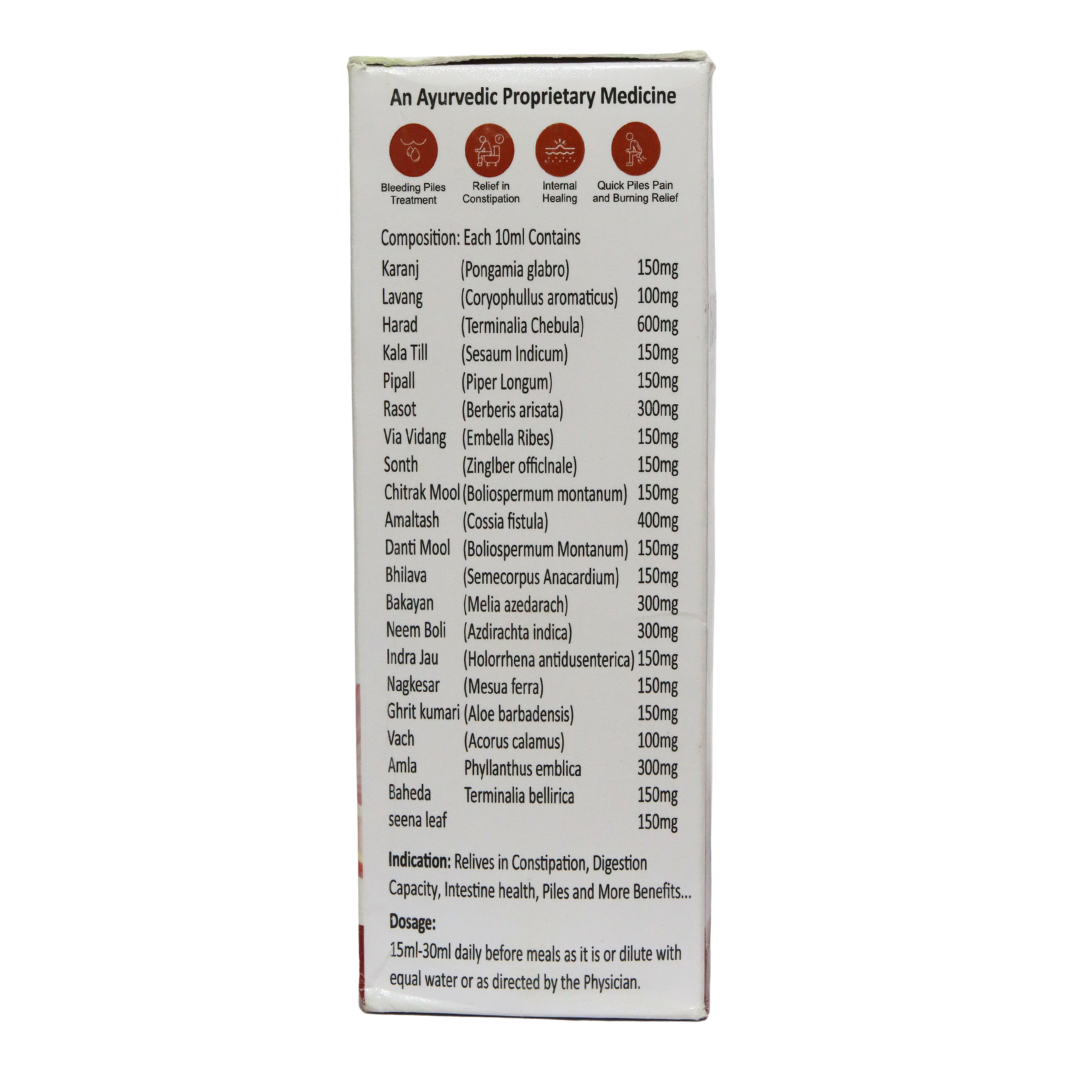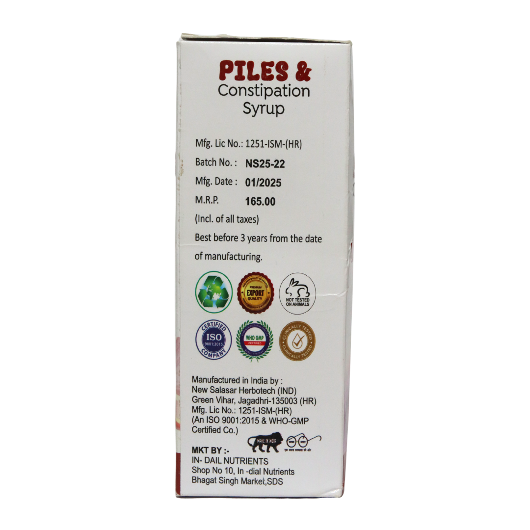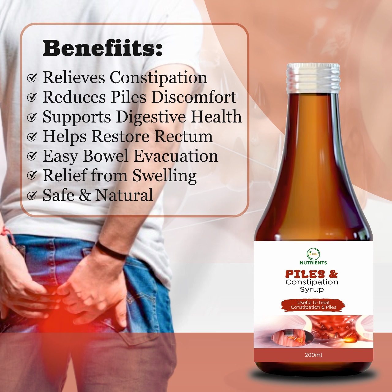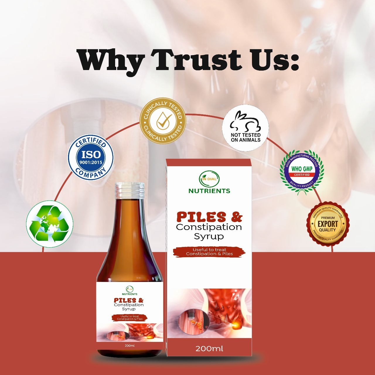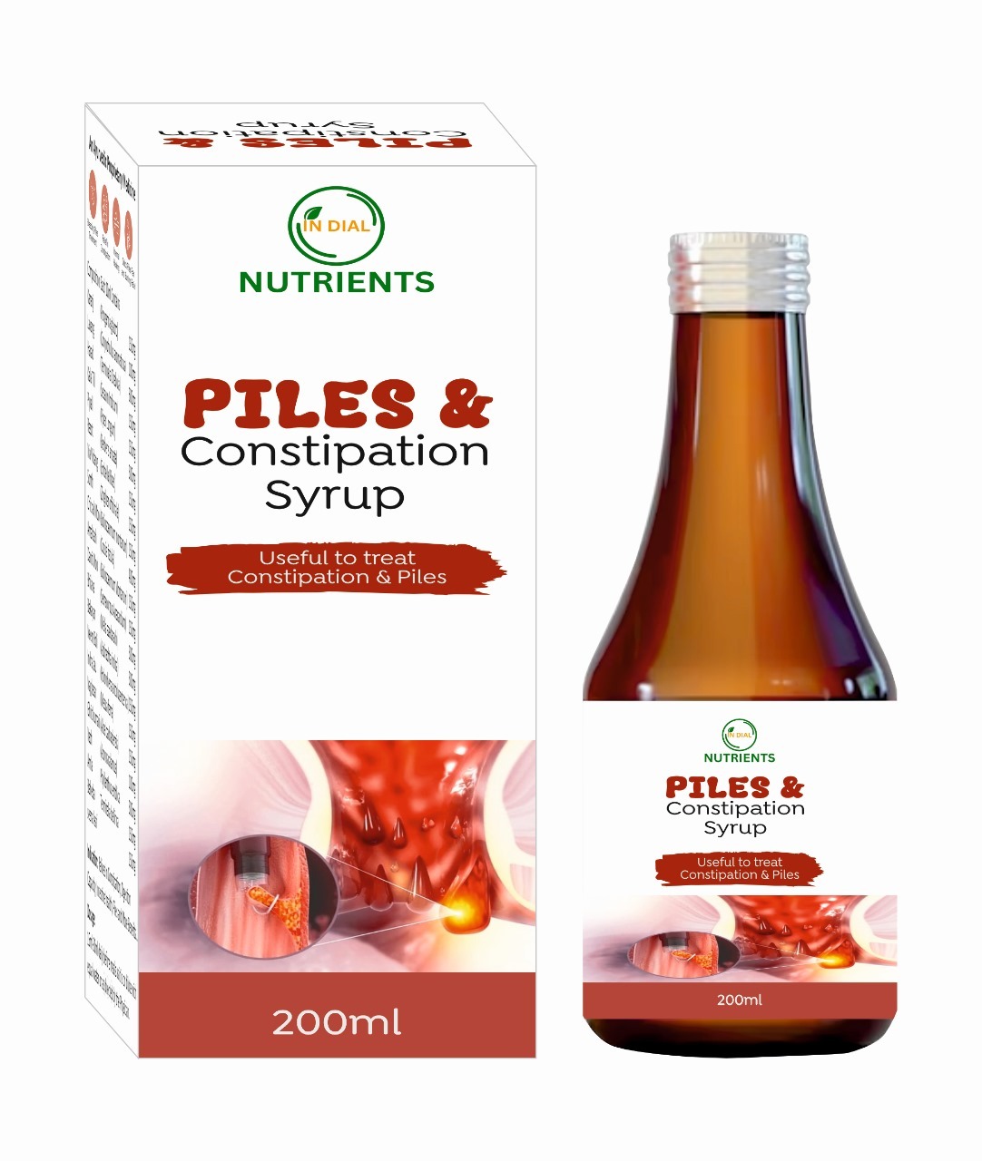 In-Dial Nutrition Piles & Constipation Syrup is an Ayurvedic herbal formulation designed to provide gentle and effective relief from constipation, piles, and hemorrhoid-related discomfort. This natural blend works to support healthy digestion, promote regular bowel movements, and reduce inflammation for long-lasting comfort.