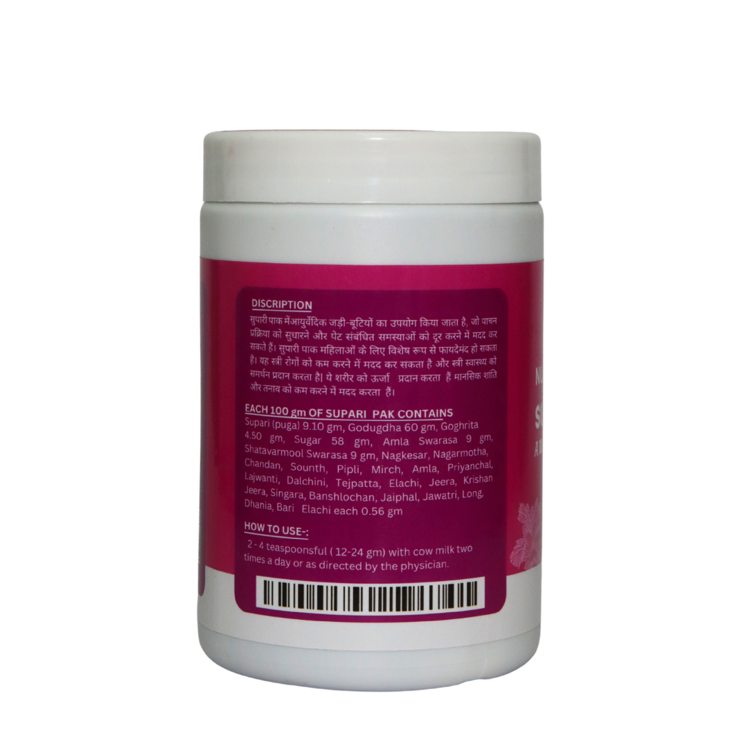 Supari Pak is also valued as a post-pregnancy rejuvenator, helping restore strength and support recovery. Suitable for women across different life stages, it provides gentle and natural support for long-term wellness.