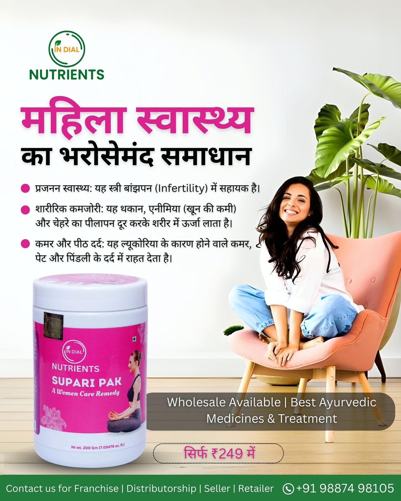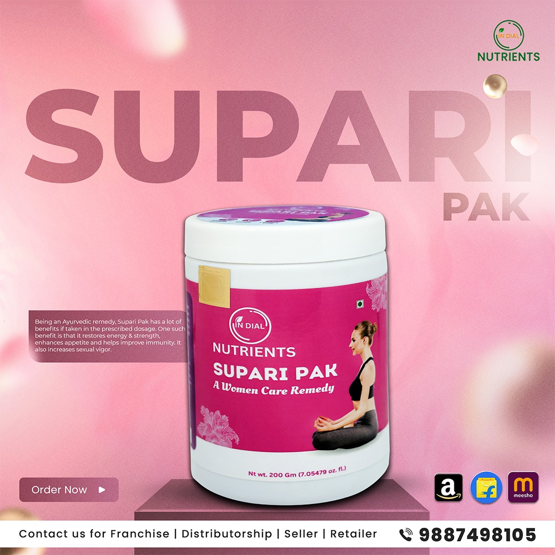 In-Dial Nutrients Supari Pak is a time-honored Ayurvedic formulation specially crafted to support women’s health and overall wellness. Traditionally used to promote reproductive health, it helps regulate menstrual cycles and supports natural hormonal balance.